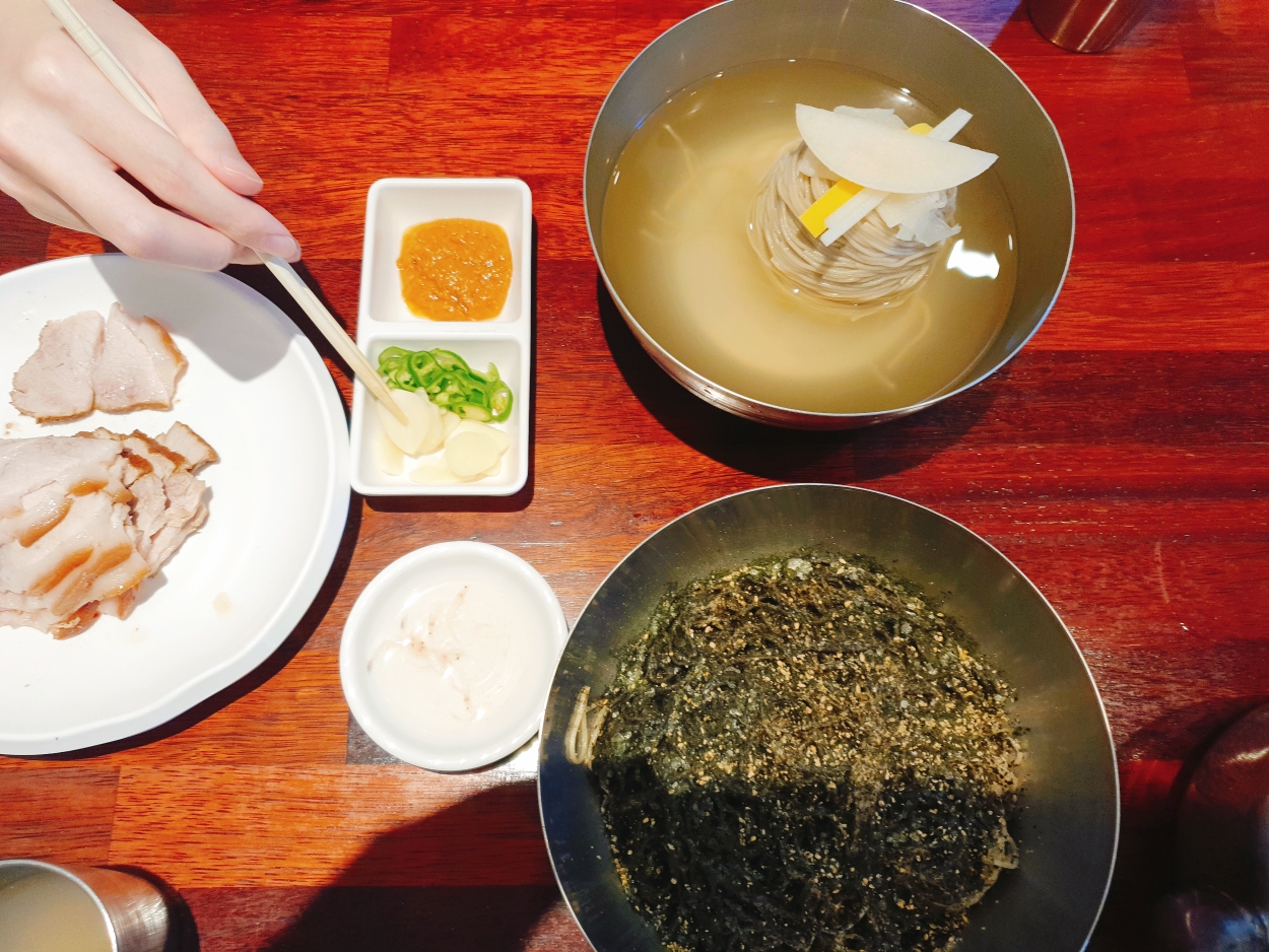 들기름 막국수, 물막국수, 수육 작은 것 하나 주문!
