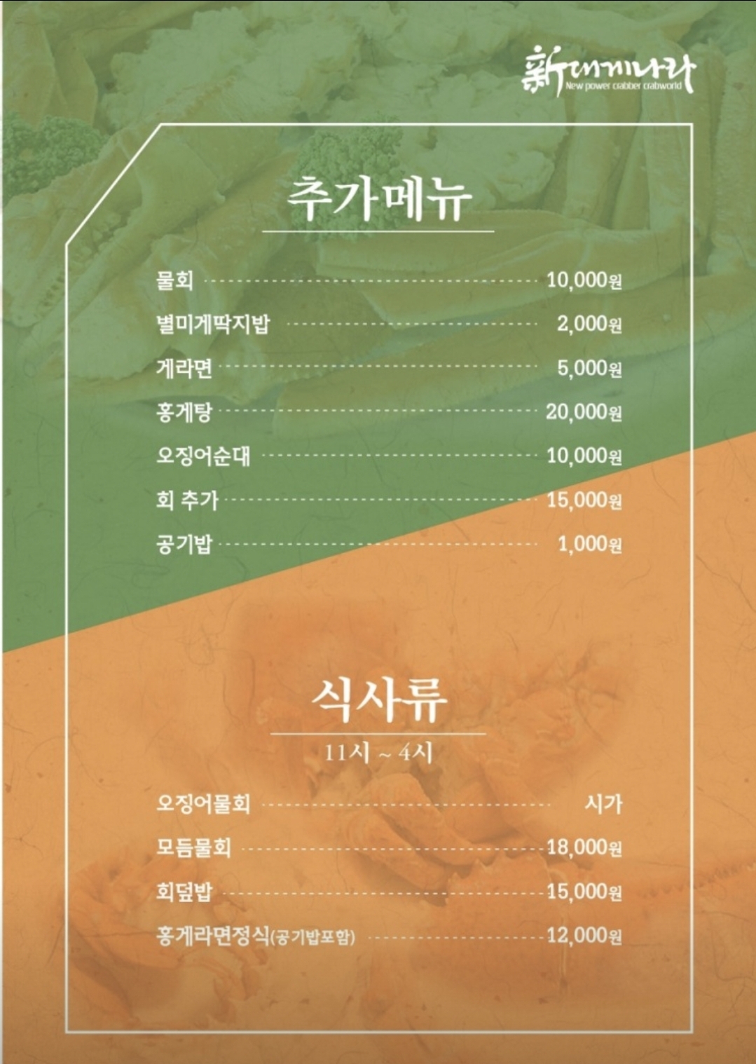 게가 부족하면, 추가 메뉴도 시킬 수 있다.